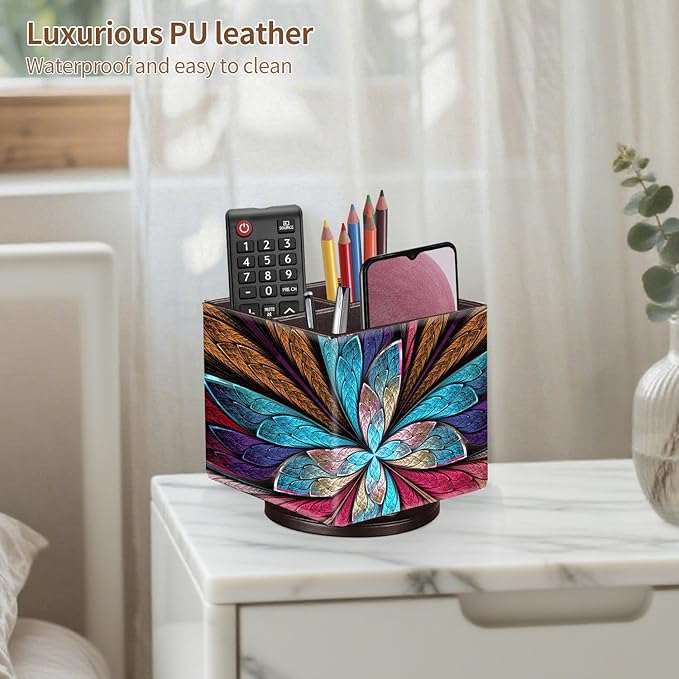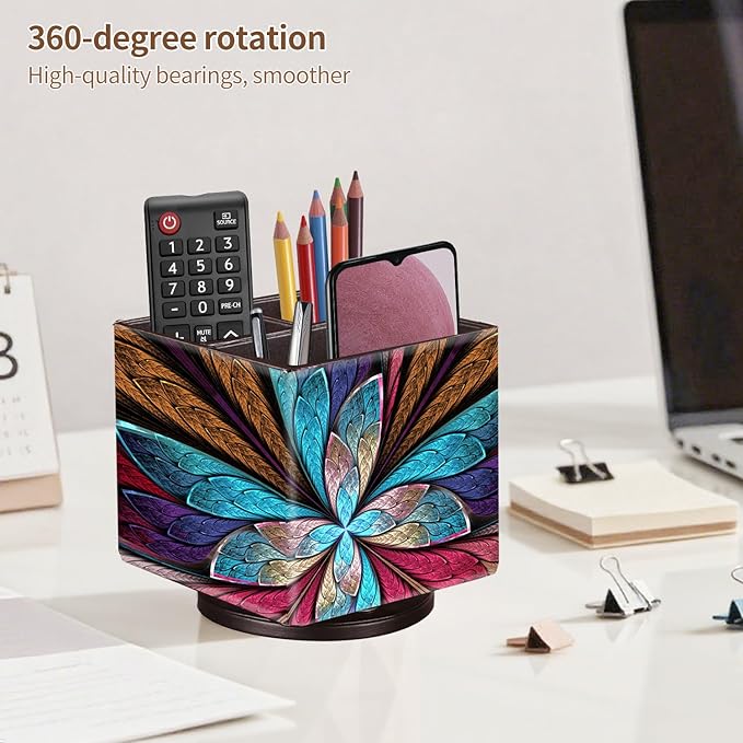 - ROTATABLE REMOTE CONTROL HOLDER: Improved swivel base for smoother 360 rotating and more durable, allows easy access to items from any direction. This tv remote caddy fits easily on a coffee table, end table, couch, armchair, bedroom, living room, kitchen, corner desktop, counter, dresser, study room and office. Easy to track and assort all controllers, add a room decor aesthetic for office & home.
