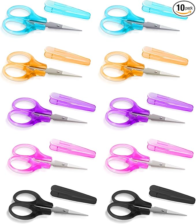 10 Pcs Small Scissors All Purpose, Stainless Steel Sharp Mini Detail Craft Scissors with Protective Cover for Embroidery, Paper Cutting, Sewing, Knitting, Crafting, 3.5"