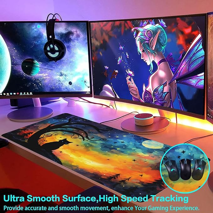 - Full Desk Mouse Pad Gaming: The size is 35.4"x15.7", it's large enough to cover your desktop and accommodate keyboard and mouse. The Large size ensures free movements of your mouse. It also can protect your desktop from any scratches or stainess