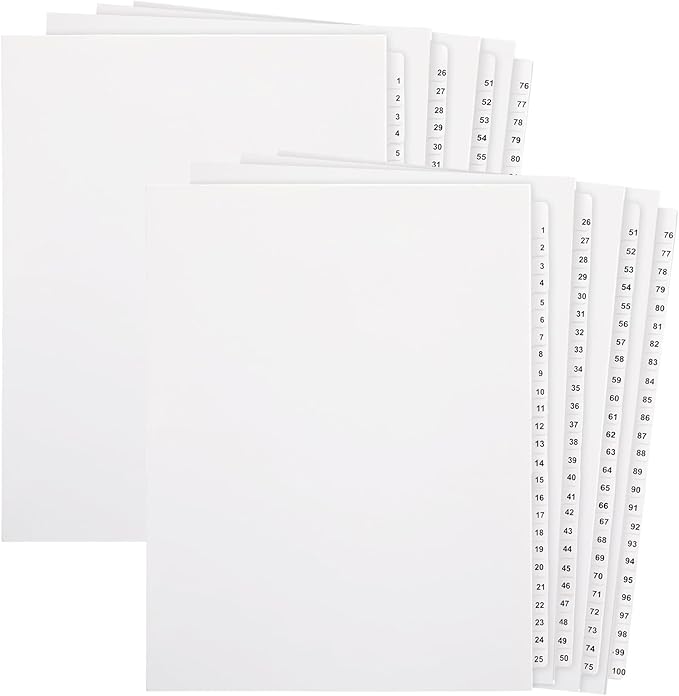 - Practical Combination: this package includes 2 set 101 sheets of numbered dividers, featuring 2 blank divider and numbered dividers; The dividers are numbered from 1 to 100, serving most of your organizing needs at home, school, or office with ease