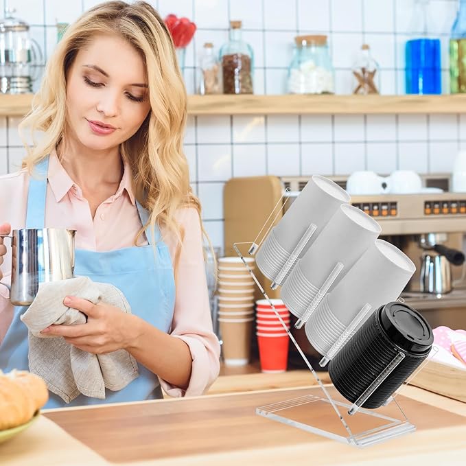 Acrylic Cup and Lid Holder, Adjustable Coffee Cup Holder Organizer Disposable Cup Dispenser Stand Countertop for Coffee Bar Station Bakery Breakroom 4 Compartment