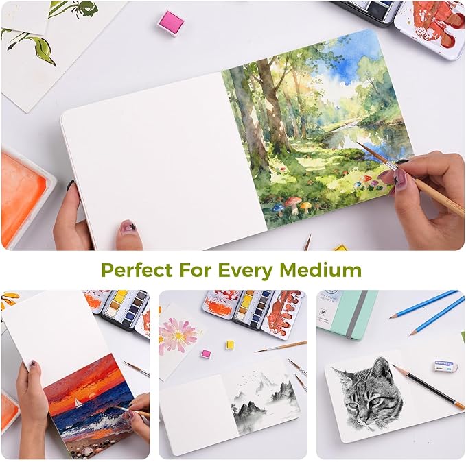 - Versatile and Affordable - Our watercolor sketchbook suitable for both professionals and beginners which is perform well with all wet and dry media, including gouache, acrylics, inks, and even sketching, It's the perfect gift for all ages, professionals, and beginners