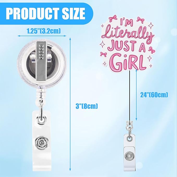I’m Literally Just a Girl' Cute Pink Bow Badge Reel Retractable Funny Badge Holder Retractable Clip Nursing Badge Clips for Healthcare Girls